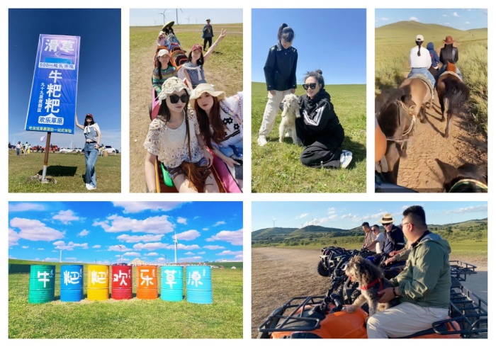 行程的壓軸大戲在輝騰錫勒牛粑粑歡樂草原上演!這里不僅是風景的盛宴,更是歡樂的海洋。伙伴們盡情釋放活力:坐上童趣十足的小火車,穿梭草原。體驗速度與激情的滑草,從坡頂飛馳而下,尖叫與歡笑齊飛!近距離喂羊,感受與草原生靈的互動溫情。更有令人心跳加速的草原摩托車馳騁項目,引擎轟鳴,驚起草叢飛鳥,風馳電掣間盡顯團隊成員的颯爽英姿!騎馬漫步草原,悠然自得,以另一種視角領略草原的遼闊與寧靜。